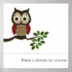 this cute cartoon owl sitting on a branch with green leaves is on top of an all white background. There is a saying at the bottom that reads "there's always an answer