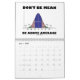 Make others do a double-take with a dose of wry statistics humour with this calendar featuring a variety of light-hearted, humourous statistical sayings. 14 different images in total - one for each month (12), plus one on the front cover and one on the back cover. You'll enjoy this calendar with a dose of statistical attitude throughout the year! No need to be a stats major, statistics teacher, or statistician to enjoy!