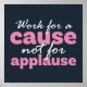 Work for a cause. Not for applause. Inspirational and motivational quote design for activist and volunteer who work passionately to make impact in this world. Cool positive message merchandise for those who sacrifice their time and money to help others. Perfect design for those volunteers in humanitarian cause, animal rescue shelter or fight for equal rights. Vintage and retro style typography art with cursive calligraphy handwriting font for people with kind hearts.