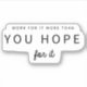 Motivational quote laptop sticker or water bottle sticker. "Work for it more than you hope for it."