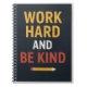 Work Hard And Be Kind" Motivational School Noteboo Notebook