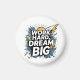 A small spark for big ambitions! This "Work Hard Dream Big" button magnet packs a powerful dose of daily motivation. Place it on your fridge, office filing cabinet, or locker for a constant, visual reminder to pair relentless effort with bold vision. It's the perfect token for go-getters, turning any metal surface into a personal inspiration board.*
