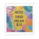 A sleek, minimalist notepad featuring the inspirational phrase "Work Hard Dream Big" in bold, modern typography. Ideal for daily journalling or goal setting.