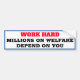 WORK HARD. Millions on welfare depend on you! Bumper Sticker