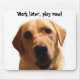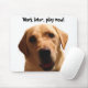 Funny yellow lab mousepad with "Work later, play now!"