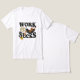 Bold skeleton in a hammock under Work Sucks text; vibrant palette, cheeky office humour, ideal for casual tees and gift-oriented apparel.