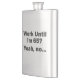 The product is a good size and came exactly as it was pictured. The lid is not attached to the flask, which could be dangerous on drunken nights... The print came out surprisingly well and looks very sharp. Would definitely recommend.