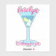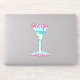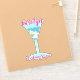 This fun contour cut sticker can be personalised with your name in pink, above a drawing of a blue cocktail glass of gin and tonic with ice and lemon, and the words "Working for gin".