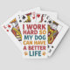 This design is for every dedicated dog owner out there. Featuring the relatable phrase "I work hard so my dog can have a better life" in a mix of vibrant colors, this shirt is a funny and heartfelt way to show your devotion to your furry best friend. The addition of subtle paw prints makes it the perfect design for anyone who loves their canine companion more than anything.