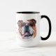 Here's the perfect office mug for the Bulldog owner! At the middle is a portrait of a beautiful English Bulldog wearing red sunglasses. The image is printed on two sides, and in the middle is red and black text that says "I work HARD so my BULLDOG has a BETTER life". Cute! *If you prefer to change or remove the text, you may do so.