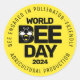 Make May 20th (World Bee Day) a memorable event with these stickers, which feature the 2024 theme "Bee Engaged in Pollinator-Friendly Agricultural Production" encircling the words World Bee Day 2024 with a stylized honeybee hovering over the letter B. Reverse shows identical design.