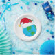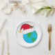 A globe of the world with a christmas hat on it. This design looks really effective on this Paper Plates