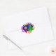 A colourful rainbow design of peace symbols to protest against war, a tree and sun to save the planet's resources, and a heart to love one another ties in the words: "World Citizen."