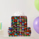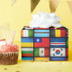 Wrapping paper with international flags on it.