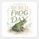 This elegant watercolor-style illustration celebrates World Frog Day with a realistic green frog poised on earthy ground, surrounded by soft botanical details. Refined typography highlights “World Frog Day” with the date March 20, blending natural tones and hand-painted textures. A calm, artistic nature-themed design inspired by wildlife appreciation, environmental awareness, and the beauty of amphibians.