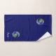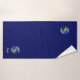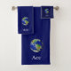 World globe and text on navy blue Bath Towel Set. Text can be personalized. Text only on one side!