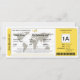 World Map with Vintage Propeller Airplane - Airline Boarding Pass ticket for your a birthday invitation. In colours of Bright Yellow and Warm Tan/Brown. Featuring a world map in the background. If you have any changes needed to this design or layout (colours etc) just email paula@labellarue.com