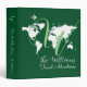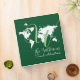 Dark green background with a white map of the world, and your family name and monogram in a script font-style with custom words 'Travel Adventures'... to collect and organize photos and memories of your travels around the world