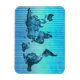 World Map | Neon Blue Stripes Magnet