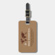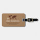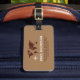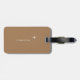 Modern brown luggage tag with the image of a map of the world and a small airplane