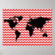 world map on red chevron pattern poster