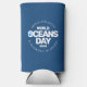 World Oceans Day Blue Stylized Earth Waves Seltzer Can Cooler