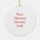 This beautifully crafted ornament features a world map encircled by gold symbols of 12 major world religions, symbolizing the global diversity of spiritual beliefs and the harmony among them. Represented are the symbols of Bahá'í, Buddhism, Christianity, Confucianism, Hinduism, Islam, Jainism, Judaism, Native Spirituality (Medicine Wheel), Shinto, Sikhism, and Taoism. Each gold symbol is thoughtfully placed around the map to inspire unity and peace across all faiths (note: the gold colour is not metallic). This ornament serves as a meaningful expression of interfaith respect and the shared values of love, understanding, and harmony. It’s a perfect addition to any holiday décor, celebrating the beauty of spiritual diversity worldwide.