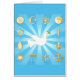 Gold symbols of international religions surround the World of Peace with a Dove on a sky blue ray background. Customize with your text. The mandala highlights twelve religious icons that express the global diversity of spiritual beliefs and harmony: Clockwise: Christianity, Hindu, Taoism, Baha’i, Buddhism, Jain, Shinto, Confucianism, Native Spirituality Medicine Wheel, Judaism, Sikh, Islam. *****Note gold colour is not metallic.*****