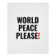 World peace please black, white and red text exclamation point minimalist modern anti war protest poster.