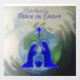Watercolor design of earth has a dove and olive leaf spreading its wings around the world. A blue silhouette of the Holy Family Nativity is superimposed for all the world to share. A beautiful expression for Christmas time love for all humanity, Share this message at this very special time of year with cards and gifts for your special friends.
