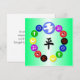 On a shaded green background, symbolizing tranquillity and serenity, we've got several of the symbols of the world's major religions - Hinduism, Buddhism, Taoism, Judaism, Christianity, and Islam - in a circle with the peace dove and olive branch over all of it. We've also added the Chinese symbol for Peace in the centre in a rich, ink black.
