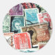 A photograph of a vintage postage stamp collage, stamps from all over the world
