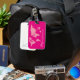 Pleasantly surprised at the quality of the luggage tag. It was exactly as shown and my daughter will be pleased. The address label on the back of the luggage tag was neat and clear.