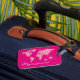 A pretty idea for girls who luv pink and airplane travel. The map of the world in a soft rose tone on a super pink background, personalized with name