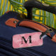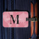 Travel the world in style! This modern luggage tag features a muted rose pink map of the world background with black and white custom monogram that can be personalized with your first or last name and initial letter.