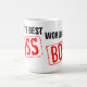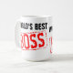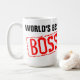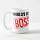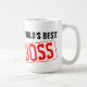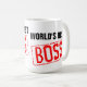 World's Best Boss coffee mugs. Cool gift idea for the office on boss day. Personalizable business text and colours. Red Rubber stamp design.
