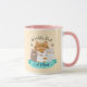 Cute brown, grey and white cats with ribbon, paws, dotted beige background and text "World's Best Cat Mom" on coffee mug. Great gift for Mother's Day or cat lovers.