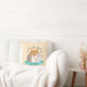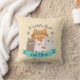 Adorable brown, grey and white cats illustration with ribbon, paws, dotted beige background and text "World's Best Cat Mom" on throw pillow.