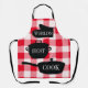 World's Best Cook Red White Gingham Check Pattern Apron - Give mom, dad, or your favourite cook this vintage looking red and white check gingham pattern apron featuring kitchen tools and pots, including an oven mitt, pot, and skillet, with the words "World's Best Cook." Great Christmas gift to keep them cooking!
