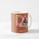 This World's Best Dad Photo Mug is decorated with the word DAD in white typography on a terracotta, rust background.