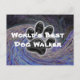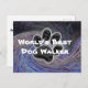 Worlds Best Dog Walker Blue Spiral Pet Paw Print Postcard