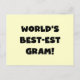 World's Best-est Gram Black Text Tshirts and GIfts Postcard