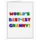 The world's best granny will love our World's Best-est Granny T-shirts, hoodies, mugs, cards, granny keepsakes, magnets, stickers, and more with a multicolored text design! Great gifts for great grandparents!