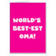 Black text and white text World's Best-est Oma T-shirts, mugs, hoodies, cards, tote bags, magnets, keepsakes, and other world's best oma gear. Great gifts for great grandparents!