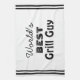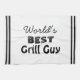 Trendy bbq quote: "World's Best Grill Guy". It makes a great gift—a fun gift idea for dad, uncle, grandpa, or son... Black vintage typography. A funny Bbq kitchen towel to use while you grill.
