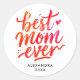 World's Best Mom Red And White Calligraphy Script Classic Round Sticker