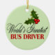 Christmas Ornament for your favourite bus driver or school bus driver that has red berry holly and the words World's Greatest bus driver.