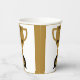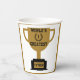 These cups features the words "World's Greatest Father" displaying a yearbook bold print font with black letters plus a winners wreath with number 1 in the centre over a golden coloured flat style cup trophy on a black base in this Father's Day theme. All cups come in a set of eight or more and holds 8 oz great for birthday parties, summer picnics, and events. All plates are FDA approved for food contact and keeps beverages warm or cool lids optional printed in USA.