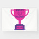 This banner features the words "World's Greatest Mother" displaying a yearbook bold print font with purple letters plus a winners wreath with number 1 in the centre over a pink coloured flat style cup trophy on a purple base in this Mother's Day theme. This banner has single side printing outdoor safe measures 4"x6" made with an elegant matte finish and is both fade and tear resistant for Indoors or outdoor use great for advertise anything, from birthdays to graduation, weddings to anniversaries. Hemmed and thermally welded edges for neat finish outdoor banners can be bought with metal grommets.
