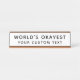 Funny white and black "World's Okayest ____'" desk name plate. Can be fully personalized with your custom text and colours.